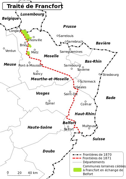 Les nouvelles frontières redessinées par le traité de Francfort